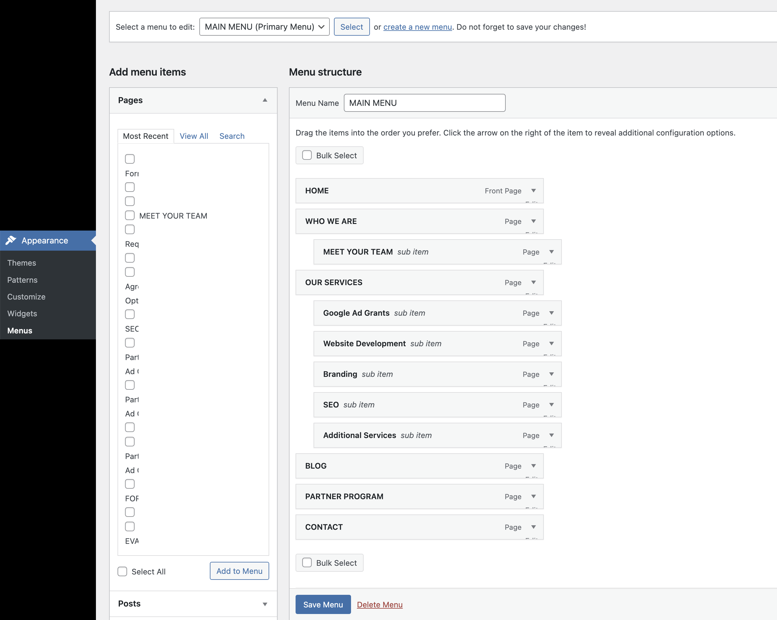 Make sure you're working with the correct menu — usually it's called Main Menu.