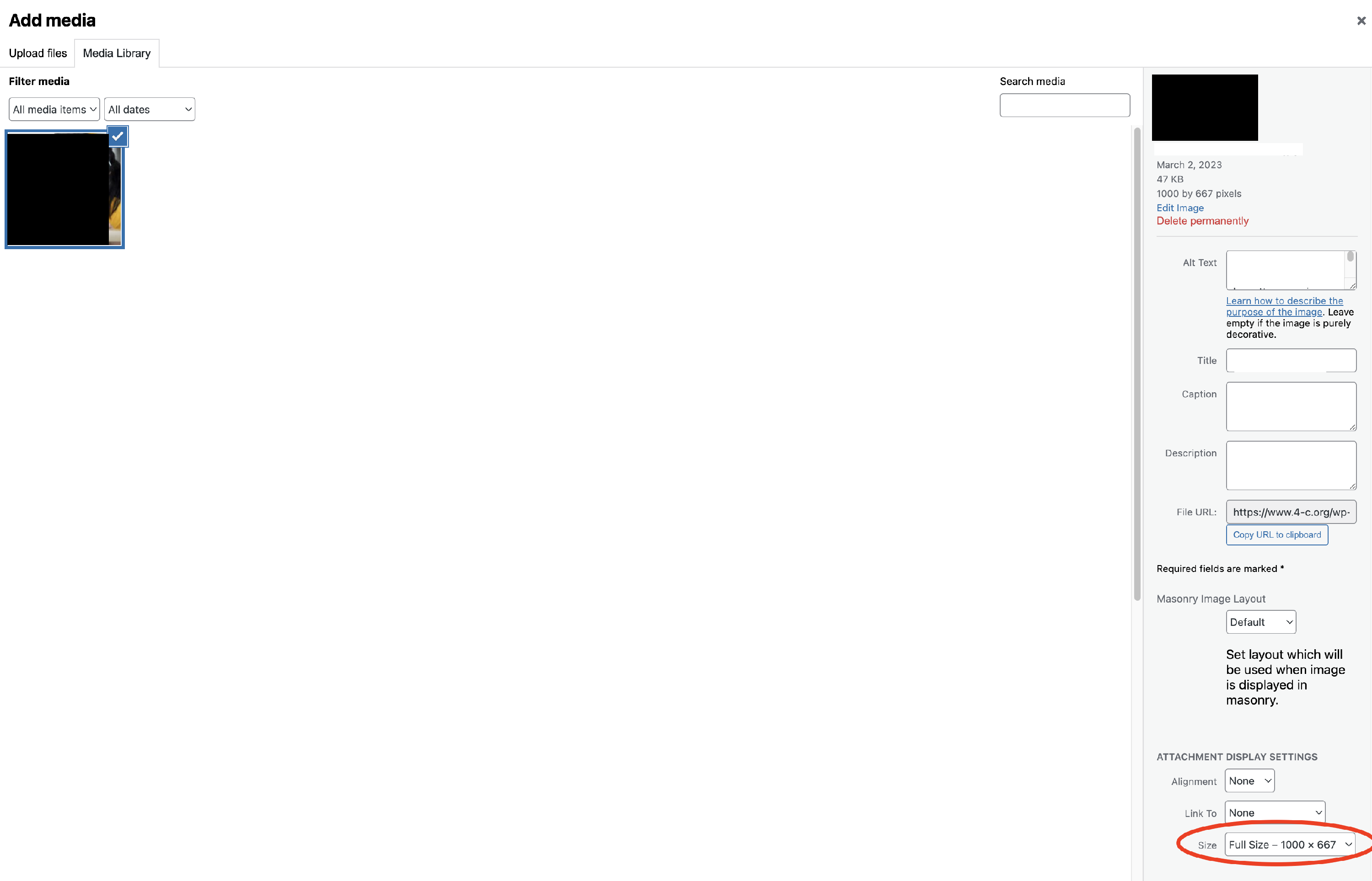 - For the Classic Editor (if you're inserting directly): When you add an image using the "Add Media" button, look for the "Attachment Display Settings" section on the right side of the pop-up window. Under "Size," select "Full Size" before clicking "Insert into post."